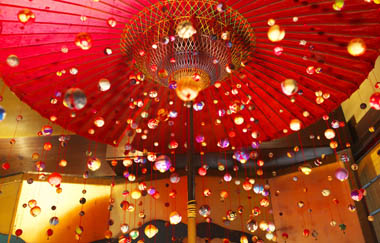 It is so beautiful and elegant.There are so coloful hanging ornaments and